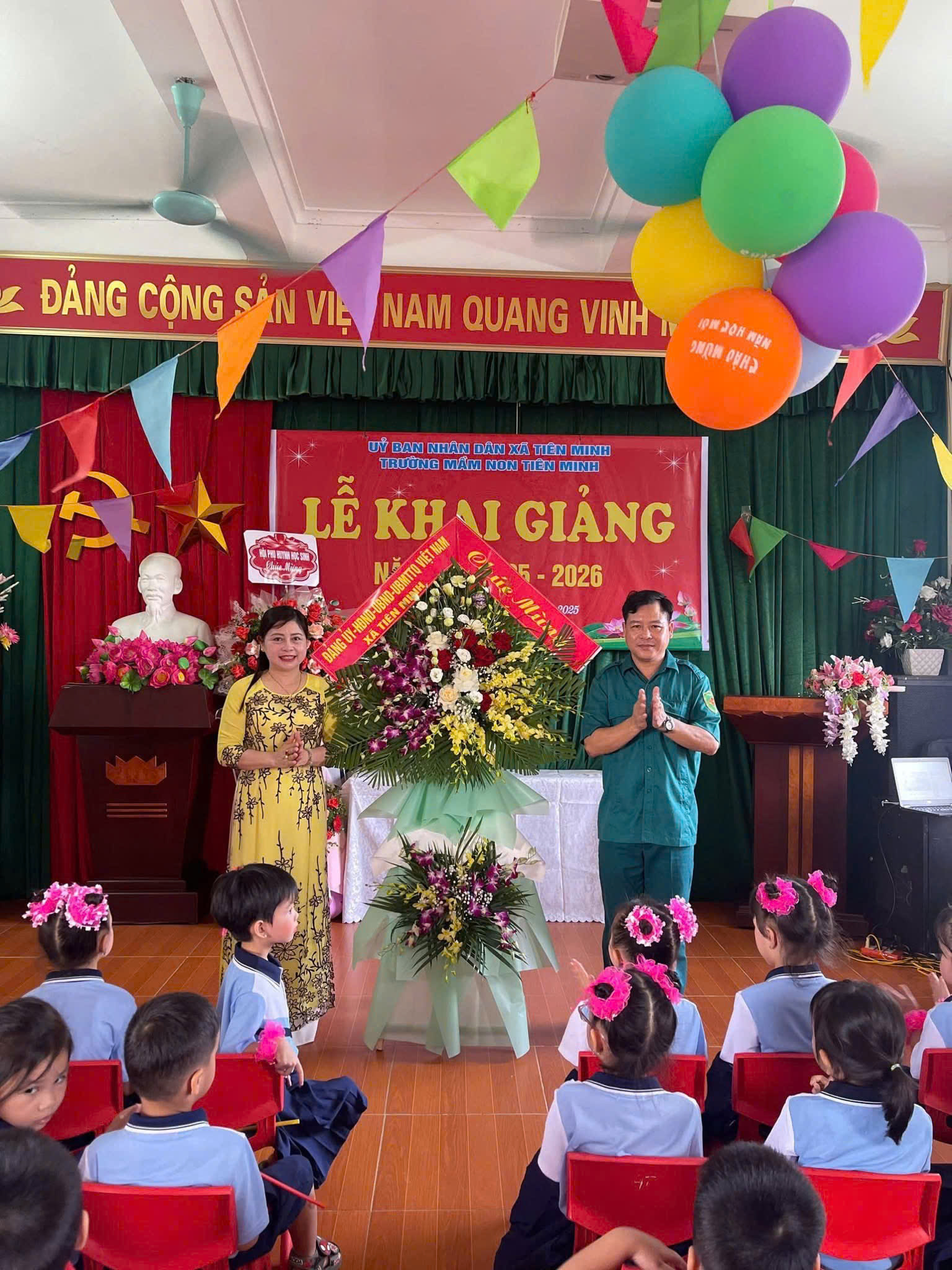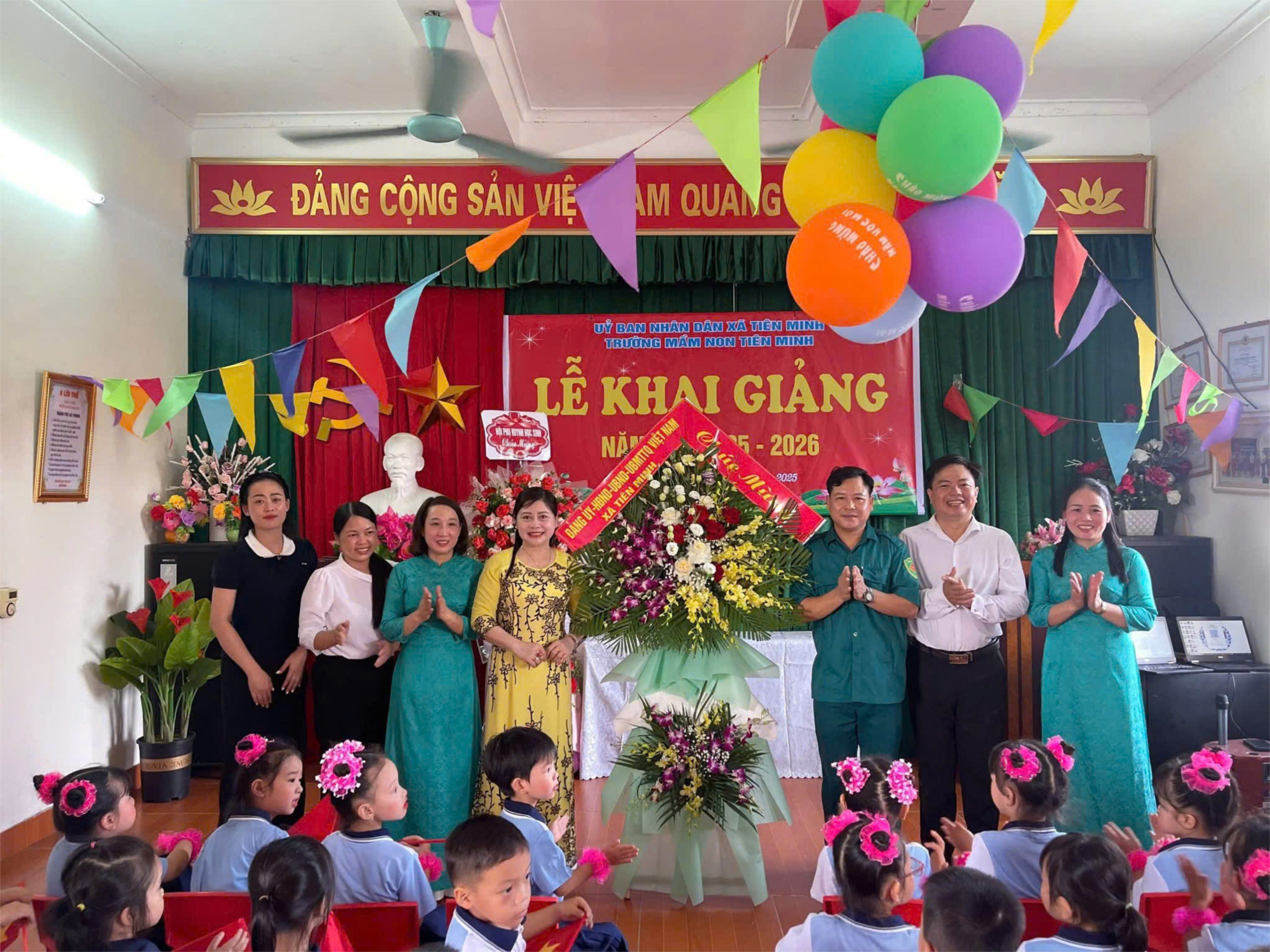 🌺💥Nhà trường vinh dự được đón Đ/c Vũ Văn Cường - UVBTV Đảng uỷ, Trưởng Ban Chỉ huy Quân sự xã cùng các đ/c đại diện cho các ban ngành đoàn thể xã Tiên Minh đã về dự có hoa và quà chúc mừng cho cô và trò.